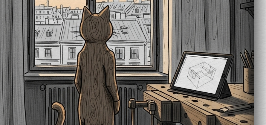 Sam stand in der leeren Werkstatt, der Duft von frischem Holz und Lavendel lag noch in der Luft. Er blickte auf sein Tablet, wo bereits eine neue, leere 3D-Leinwand auf ihn wartete. Für Sam, den Holzkater aus Wien, war jeder leere Raum eine Einladung, einen neuen Traum zu bauen.